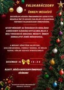 Karácsonyi műsor az óvodásoktól, iskolásoktól, Wolf produkció majd vendéglátás